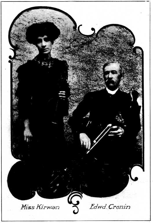 Miss Madge Kirwan, pictured with Mr. Cronin, is a talented violinist of Mount Mellick who frequently played duets with the returned exile.